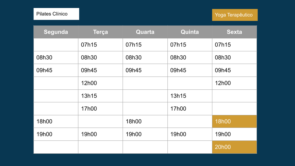 Para ingressar nas aulas de Pilates Clínico é necessário realizar uma avaliação prévia, na qual se irá avaliar o seu estado de saúde geral, definir objetivos e perceber quais as suas necessidades, de forma a que seja possível adequar a aula aos objetivos de cada participante da forma mais personalizada possível. Poderá agendar a avaliação através dos nossos contatos.